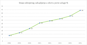 È importante sottolineare anche il significativo progresso raggiunto nel campo della raccolta differenziata. Contrada d.o.o. registra una crescita continua, con il tasso di raccolta differenziata che è aumentato dall’8% nel 2018 fino al 44% nel 2025. Questo trend positivo è il risultato di investimenti sistematici nelle infrastrutture, nell’educazione dei cittadini e nella sensibilizzazione sull’importanza della corretta separazione dei rifiuti.